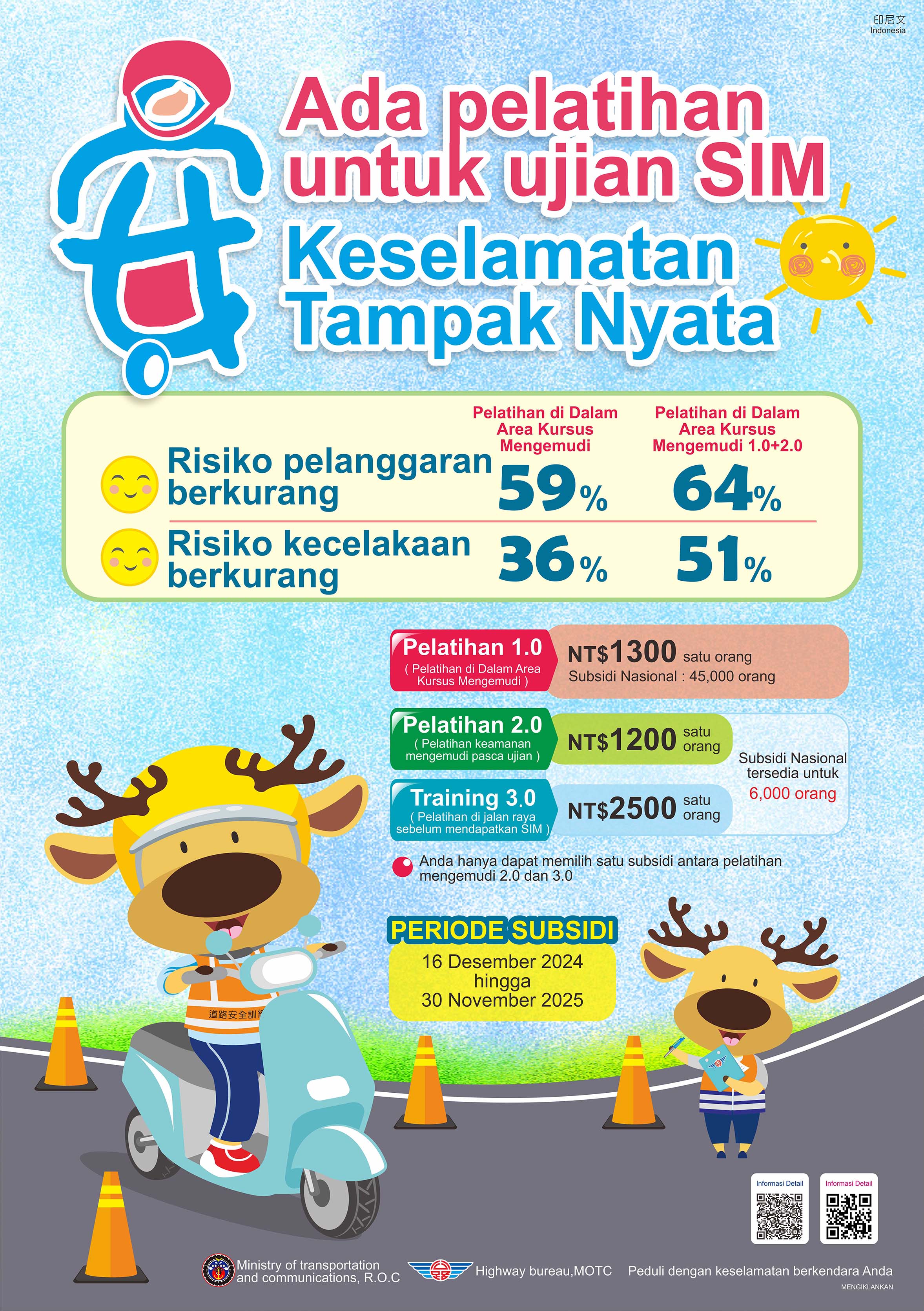 --轉知交通部公路局機車駕訓補助宣導文宣(中文及多國語言版)1份,詳如說明。--